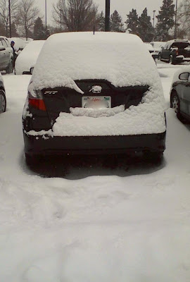 Winter has arrived here in Denver. We just finished up our second snow storm this week and the roads are atrocious. Saturday we had about 5 inches of snow, but we still had black ice from the storm earlier in the week. The roads were slushy, slippery and a dirty with brown snow. I hate getting all the snow off my car, so thank god for awesome boyfriends like Jordan.